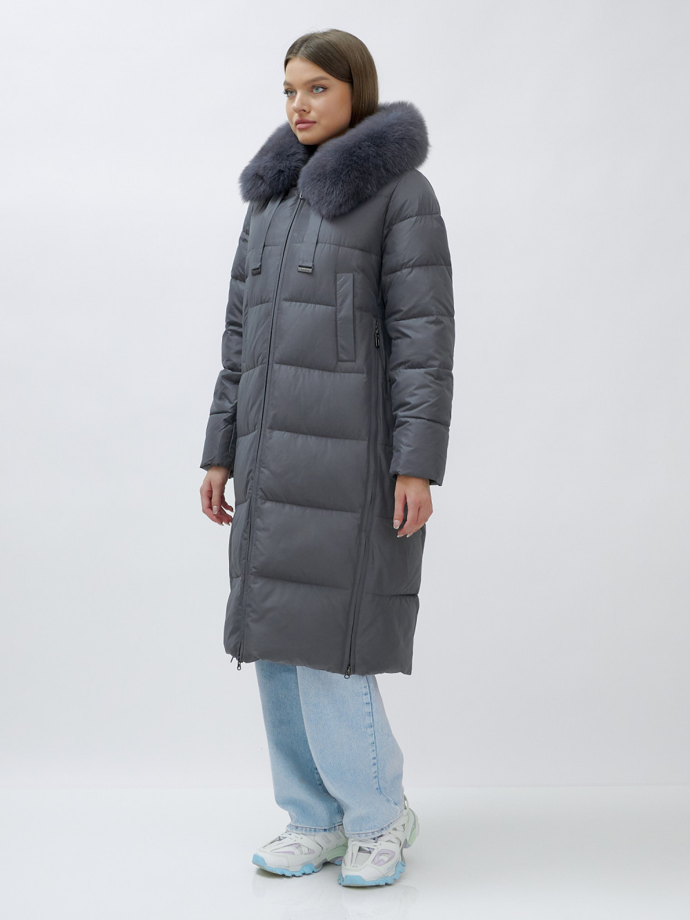 Пальто женское зимние с мехом песец большого размера серого цвета 622_1Sr