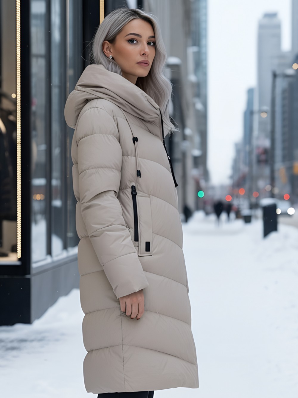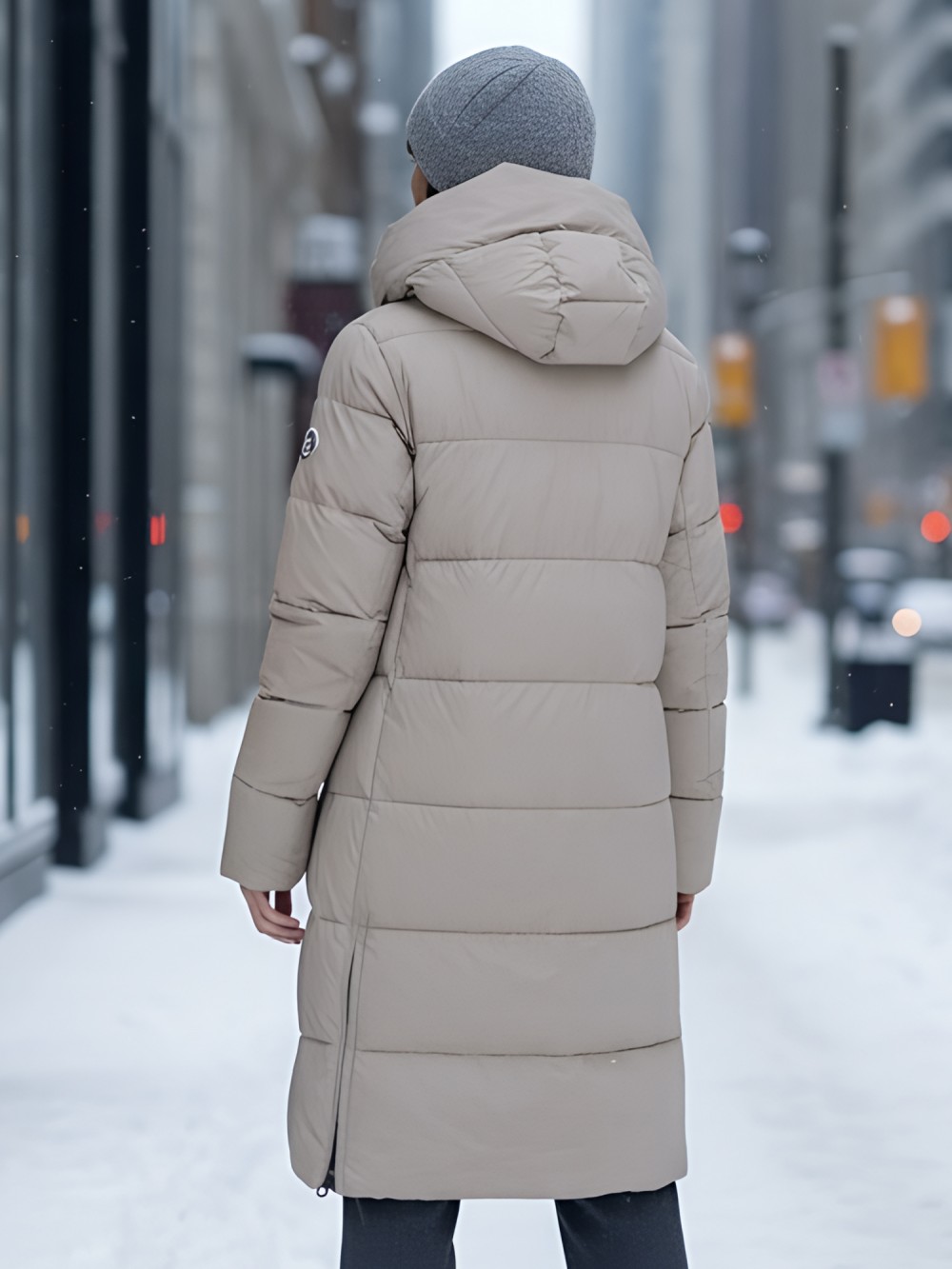 Капюшон не съемный и оснащен фиксатором, а внутренние карманы добавляют удобства. Двойная молния служит надежной застежкой, а проклеенные и прошитые внутренние швы усиливают защиту от ветра. Модель отличается элегантным офисным и повседневным стилем, а гладкая стеганая фактура материала придает ей современный вид.