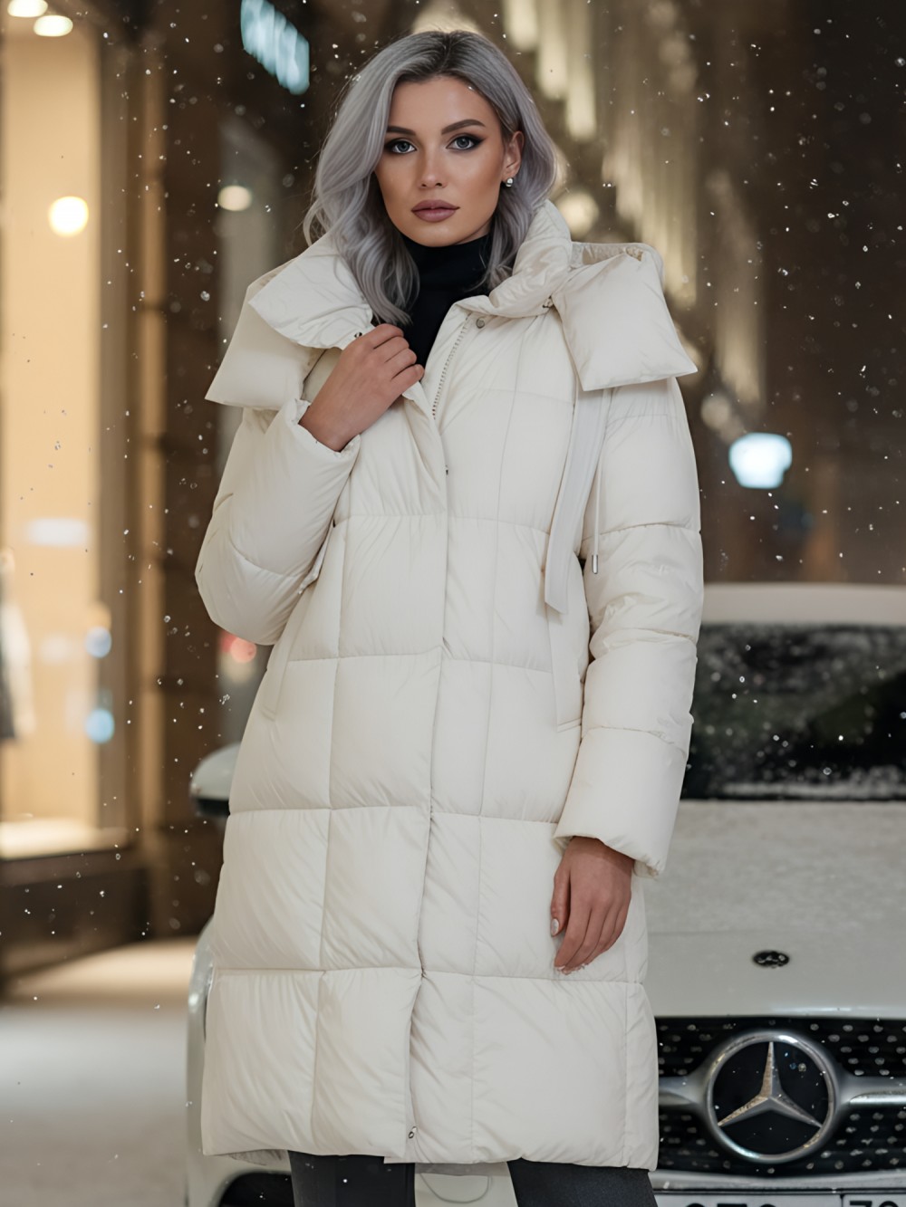 Элегантный широкий воротник на магните и удлиненная длина до колена создают утонченный силуэт, который подходит как для офисных будней, так и для повседневных выходов. Съемный капюшон и внутренние карманы добавляют функциональности, а двойная молния, кнопки и магнитная застежка подчеркивают современный стиль.