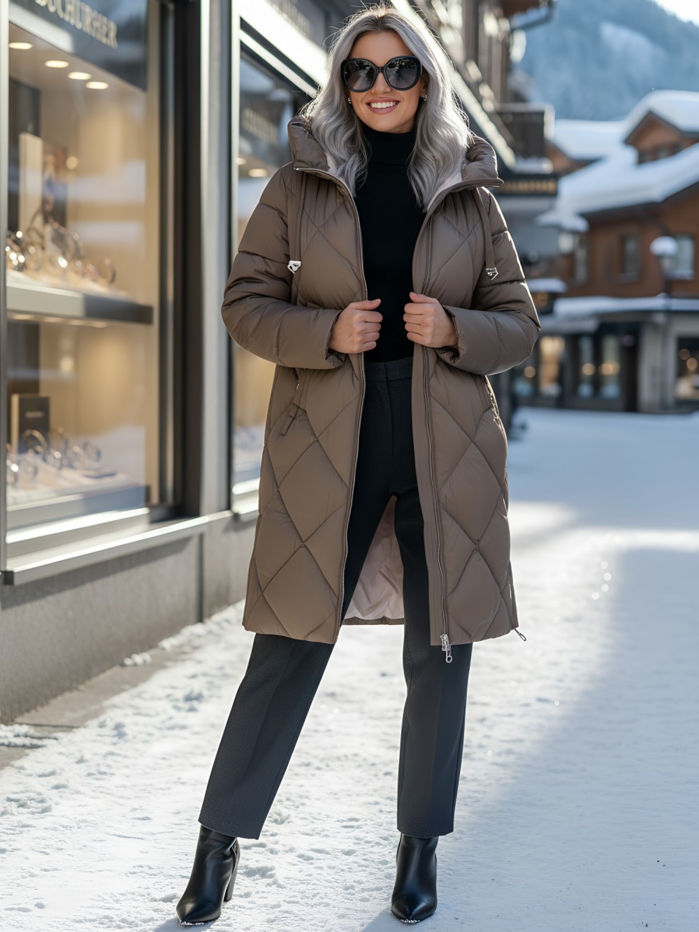 Выбирайте из разнообразных цветов: коричневый, черный, светло-коричневый и зеленый, чтобы подчеркнуть свою индивидуальность. Эта модель с шероховатой стеганой фактурой станет вашим незаменимым спутником этой осенью и зимой, защищая от ветра и влаги, а также обеспечивая гипоаллергенность.