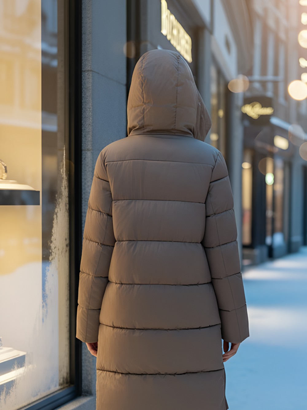 Длина до колена и удлиненный подол придают пальто элегантный и стильный вид, идеально подходя как для офисных будней, так и для повседневных прогулок. Удобный капюшон с фиксатором и внутренние карманы сделают использование пальто еще более комфортным. Двойная молния и прорезные карманы на кнопке добавляют функциональности и современного стиля.