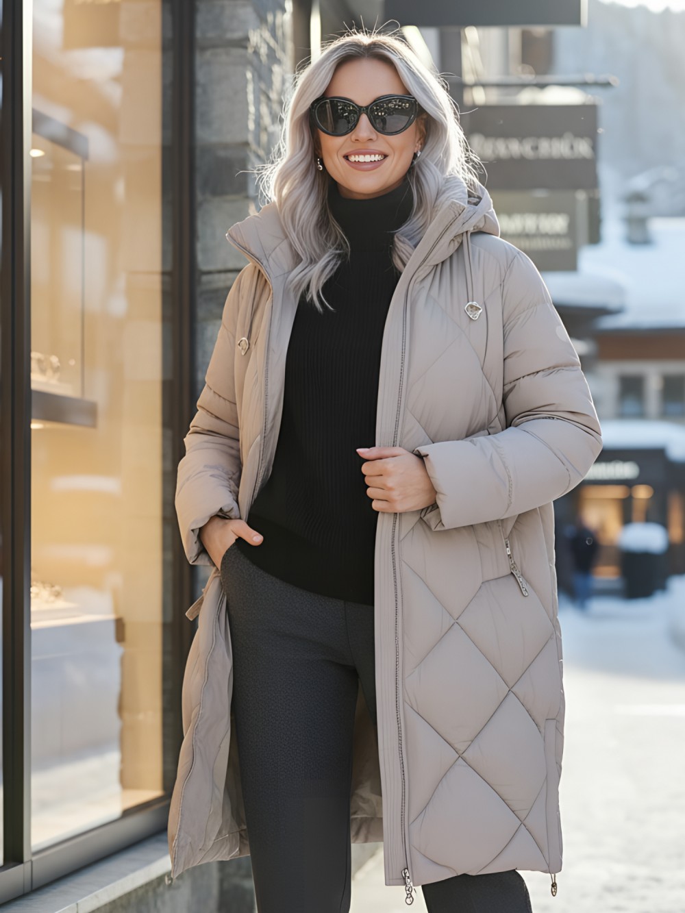 Длина до колена и удлиненный подол придают пальто элегантный и стильный вид, идеально подходя как для офисных будней, так и для повседневных прогулок. Удобный капюшон с фиксатором и внутренние карманы сделают использование пальто еще более комфортным. Двойная молния и прорезные карманы на кнопке добавляют функциональности и современного стиля.