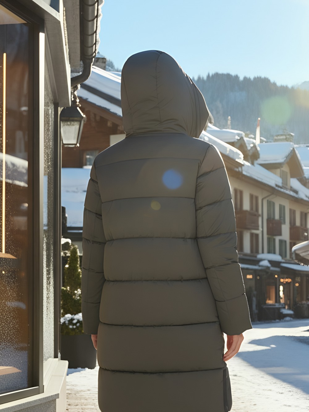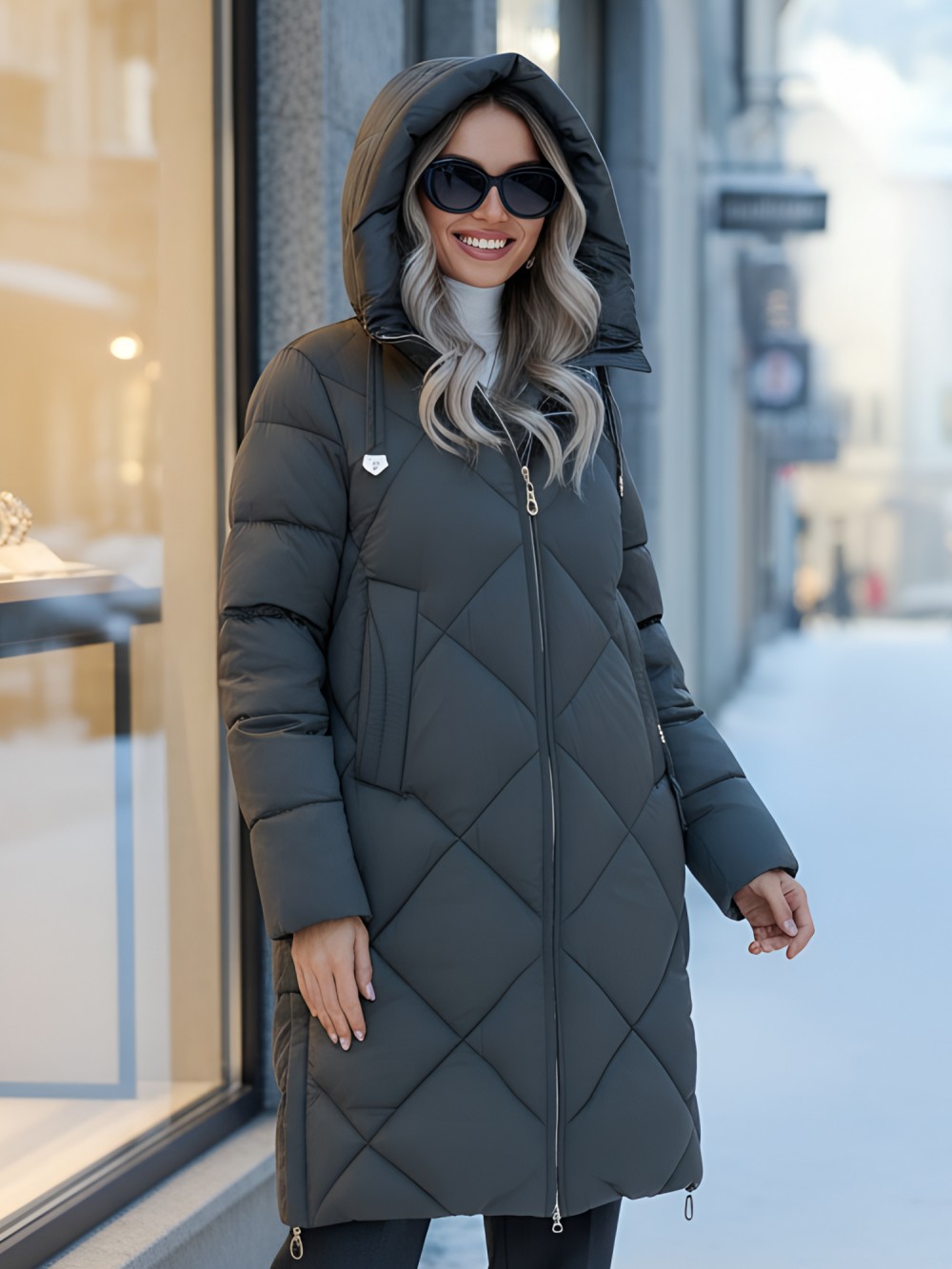 Длина до колена и удлиненный подол придают пальто элегантный и стильный вид, идеально подходя как для офисных будней, так и для повседневных прогулок. Удобный капюшон с фиксатором и внутренние карманы сделают использование пальто еще более комфортным. Двойная молния и прорезные карманы на кнопке добавляют функциональности и современного стиля.