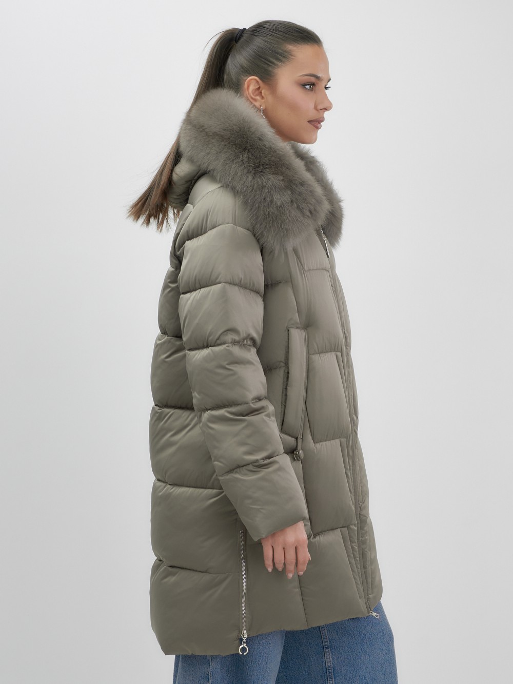 Безупречное исполнение каждой детали: двойная защита швов (проклейка и прошивка), элегантный хлястик, эргономичные манжеты, функциональные прорезные карманы на кнопках. Изысканная съемная опушка из натурального песца создает неповторимый силуэт. Первоклассное качество меха подчеркивает статусность изделия.