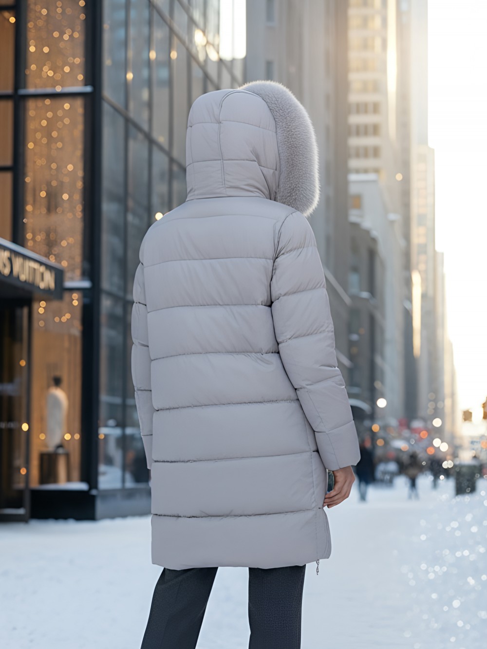 Роскошное зимнее пальто премиум-класса 2025 с натуральным мехом песца – эталон безупречного стиля! Высокотехнологичная мембрана 7000 мм гарантирует абсолютную защиту от влаги и ветра. Инновационный утеплитель плотностью 220 г/м² обеспечивает непревзойденное тепло до -22°C.