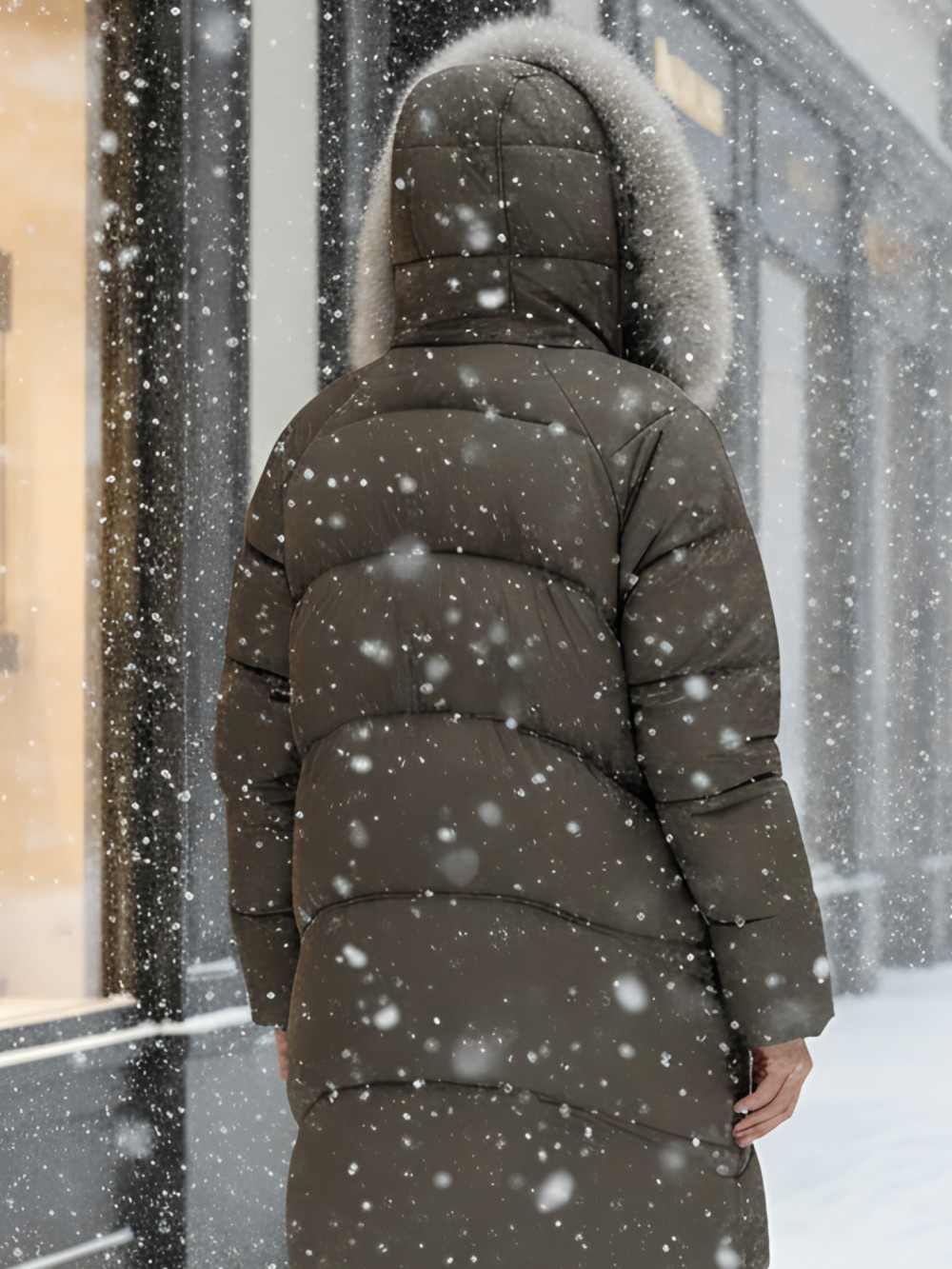 Четыре изысканных оттенка коллекции осень-зима 2025 – благородный черный, элегантный темно-коричневый, утонченный светло-коричневый и стильный хаки – безупречно гармонируют с натуральным мехом песца. Удлиненный силуэт до колена и свободный крой созданы для размеров 46-54.
