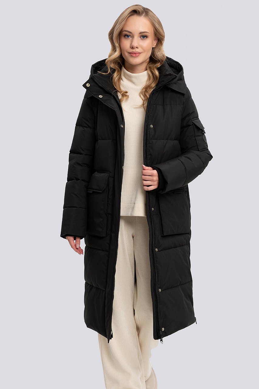 Пальто-парка в спортивном стиле не теряет актуальности несколько сезонов подряд. Сегодня парка стала универсальным элементом верхней одежды — она гармонично сочетается с джинсами и кожаными брюками, а с юбками и офисным дресс-кодом создает эклектичный контраст, который делает образ интереснее. Для сезона зимы 2026 года характерны: массивные карманы, контрастные молнии, съемные капюшоны. Если стоит задача создать не только стильный, но и по-настоящему теплый образ, парка длиной ниже колена станет оптимальным выбором. Наша модель с рукавом втачного покроя, прямого силуэта, умеренного объема – обеспечит идеальную посадку на любую фигуру. Рукав внутри с трикотажными манжетами. Застежка молния, закрытая внутренней и наружной планками. В изделии 5 действующих карманов, дополнительно карман на подкладке изделия. Капюшон отстегивается. Материал изделия – плотный, без блеска. Утеплитель – синтепух (синтетический пух). Дополнительно на подкладке изделия термофин, плотность 100. Температурный режим до – 25. черный