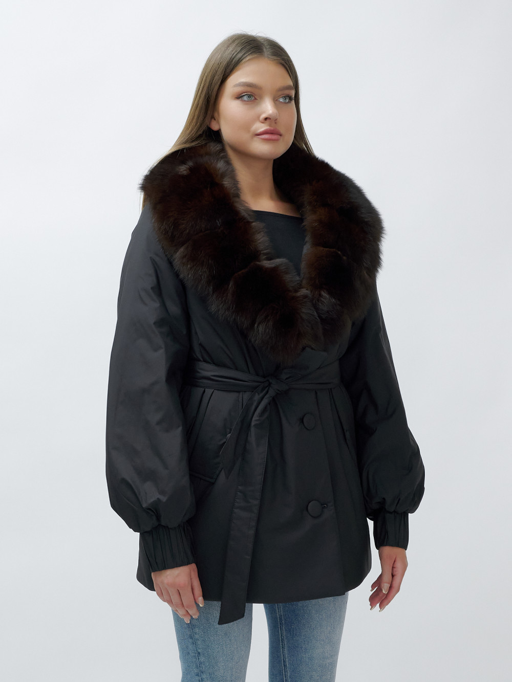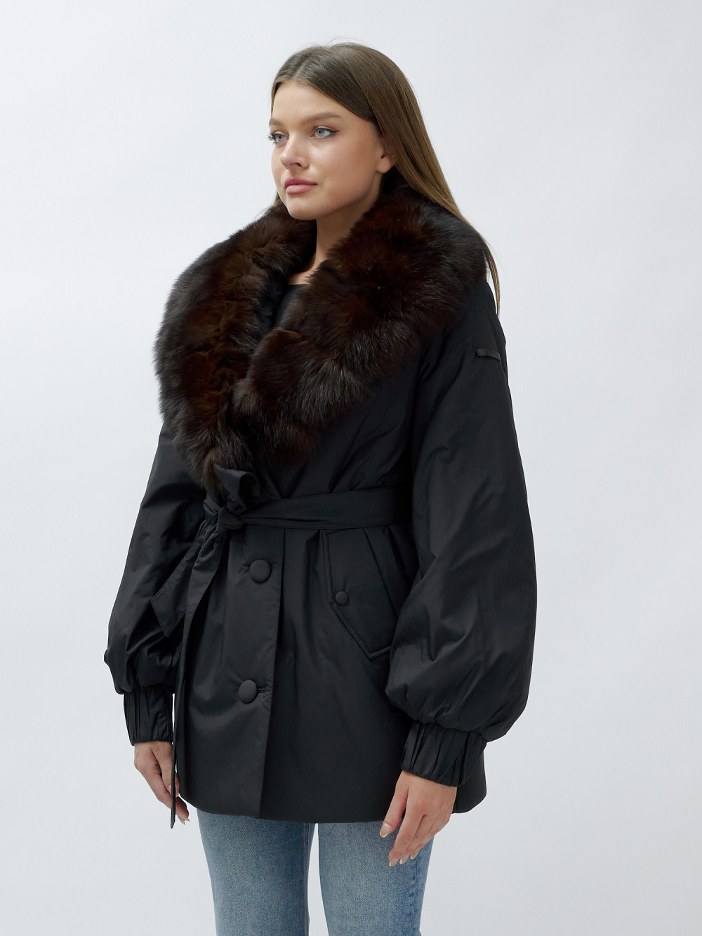 - Натуральная опушка: Съемный пушистый воротник из меха песца, обработанного под соболя, добавляет роскоши и позволяет вам менять стиль в зависимости от настроения.