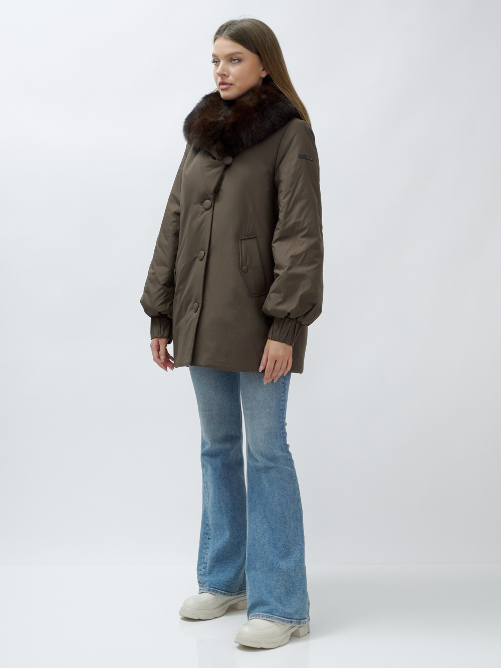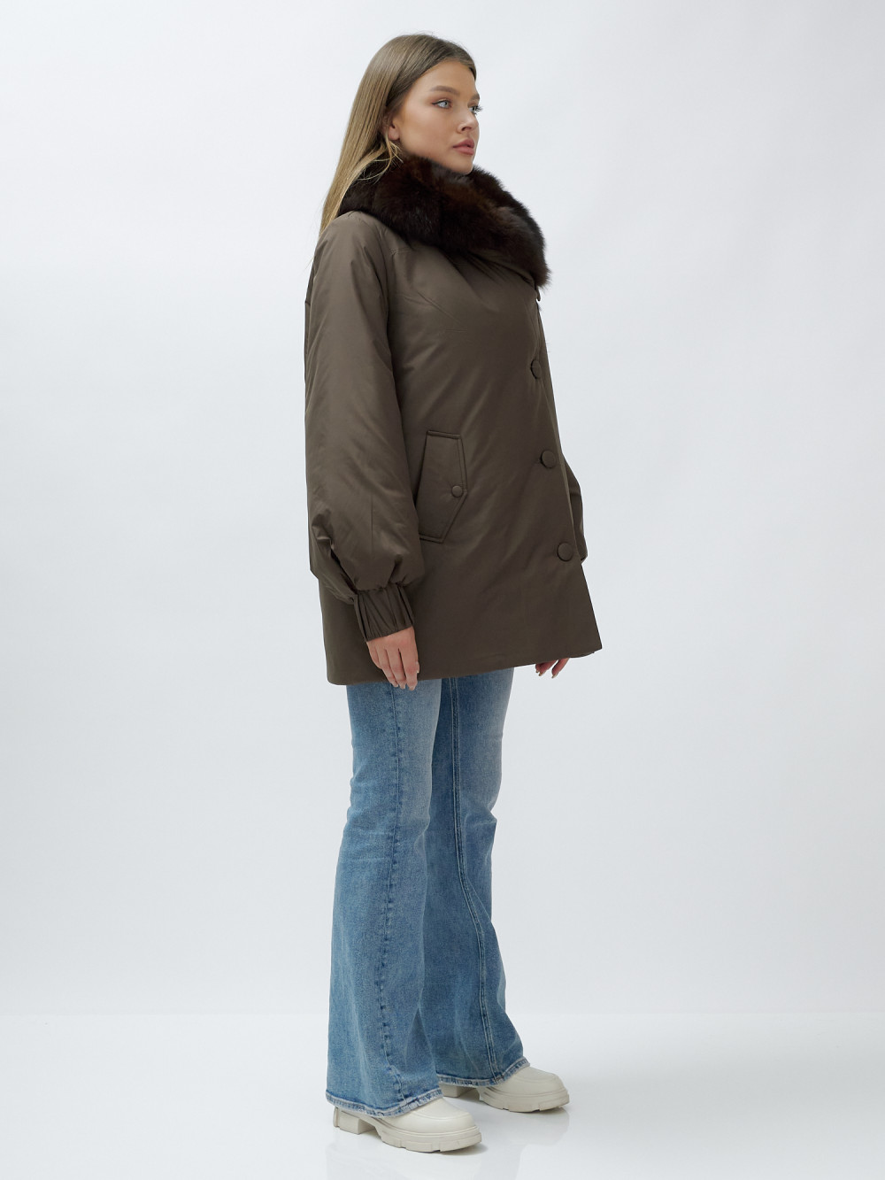 - Натуральная опушка: Съемный пушистый воротник из меха песца, обработанного под соболя, добавляет роскоши и позволяет вам менять стиль в зависимости от настроения.