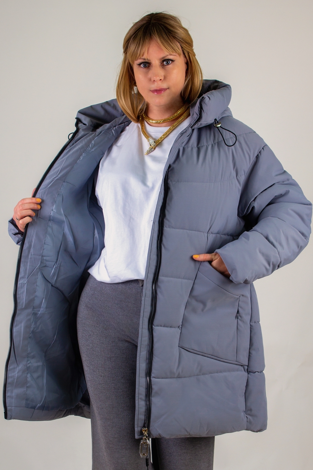 Зимняя куртка больших размеров арт. 2832 оптимальное сочетание актуального дизайна, продуманного функционала и комфорта в холодное время года. Эта модель создана специально для женщин, ценящих свободу движений и стильный внешний вид. Цвет: светло-бежевый;серый; Материал: наполнитель холлофайбер;курточная стеганая;курточная стеганая;наполнитель холлофайбер; Состав: 100% п\э.