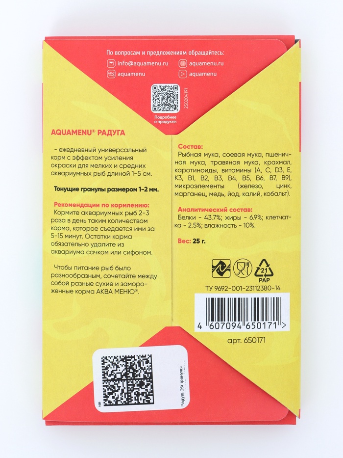 Корм Аква меню «Радуга» для рыб, 25 г
