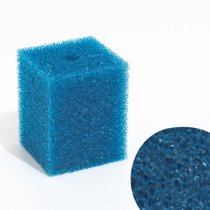 Губка прямоугольная для фильтра № 7, крупнопористая, 8×8×10 см, синяя