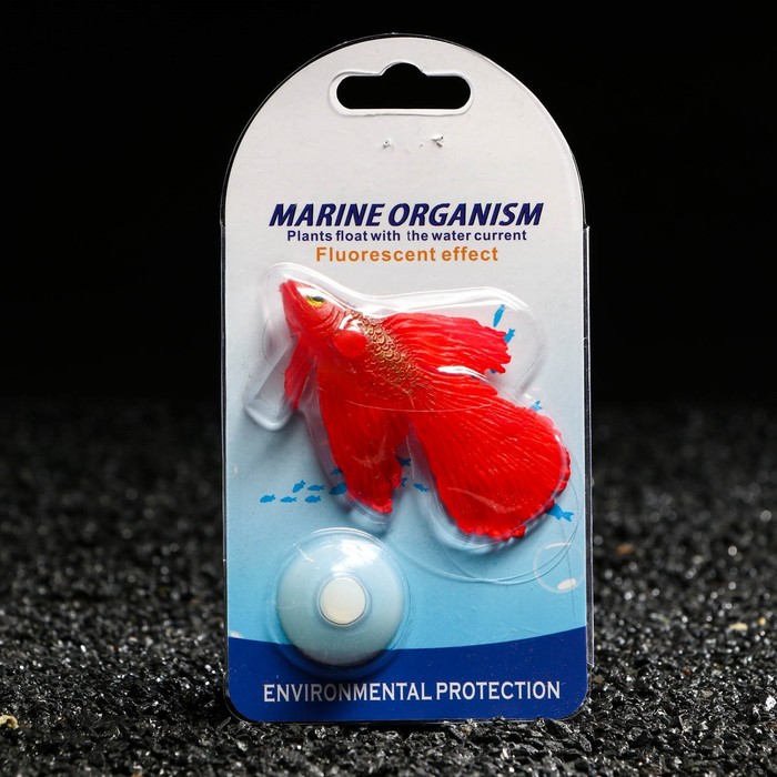 Декор для аквариума «Бойцовая рыбка», 8×1.5×5.2 см, с неоновым эффектом, красный