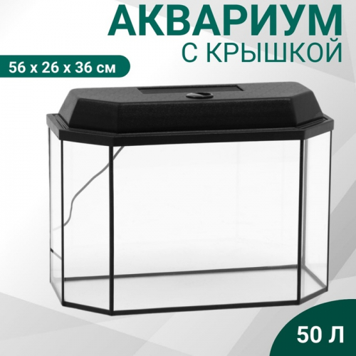 Аквариум «Панорамный» с крышкой, 40 л, 51×23×34/39 см, чёрный