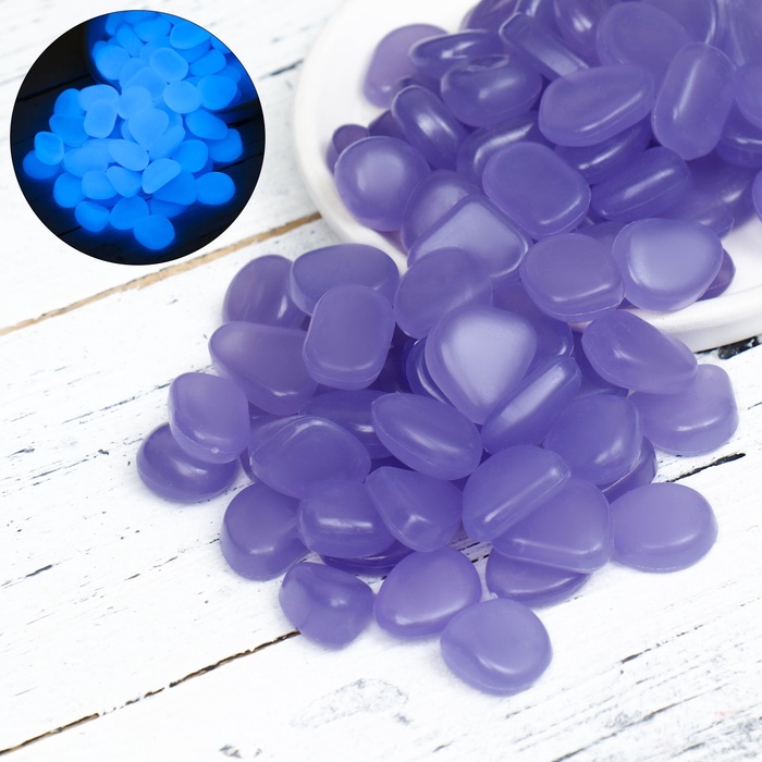 Декоративные камни для аквариума, 20 мм, 200 г, светящиеся, фиолетовые