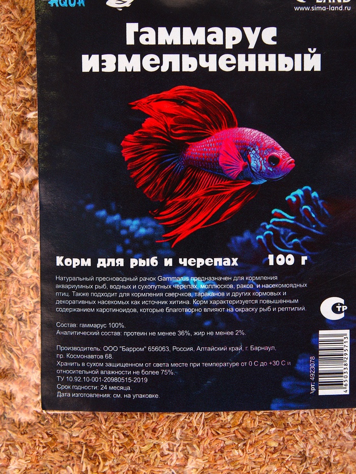 Натуральный пресноводный рачок Gammarus предназначен для кормления аквариумных рыб, водных и сухопутных черепах, моллюсков, раков, насекомоядных птиц. Также подходит для кормления сверчков, тараканов и других кормовых и декоративных насекомых как источник хитина.