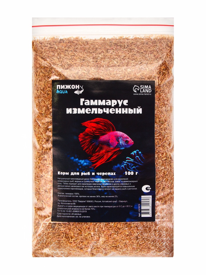 Корм для рыб и черепах «Пижон» гаммарус измельченный, 100 г