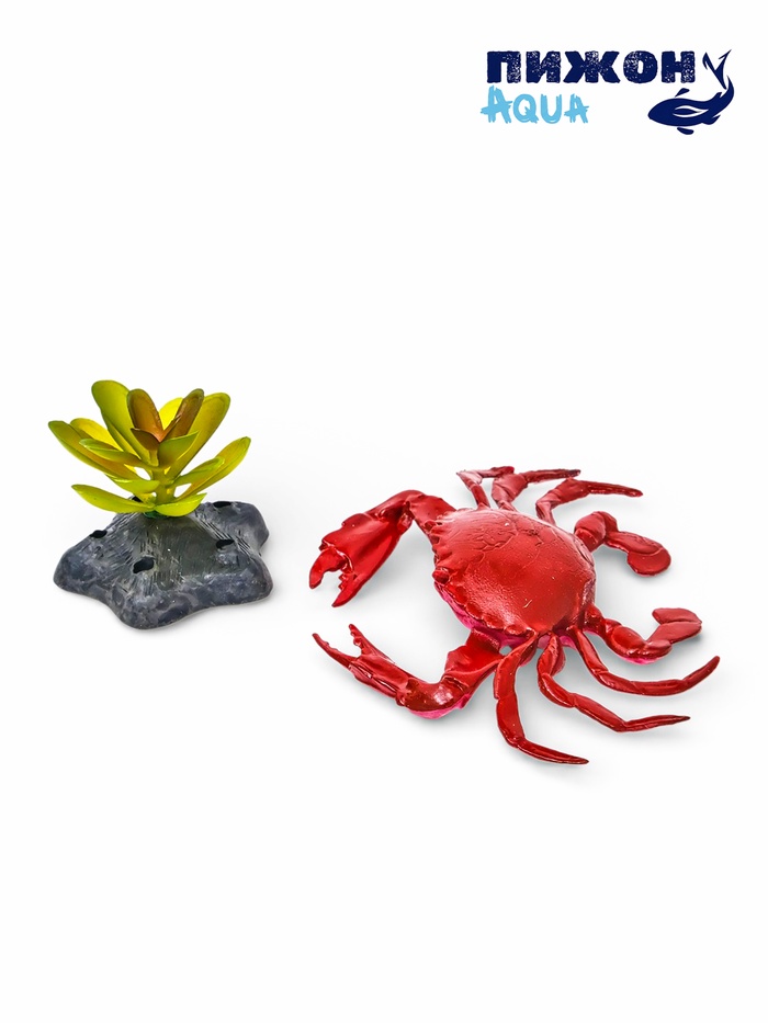 Набор украшений «Краб и водоросли» – это безопасное и яркое решение для оформления аквариума. Комплект из фигурки краба и зеленых растений мгновенно преобразит подводный ландшафт, добавив ему красок и уюта.
