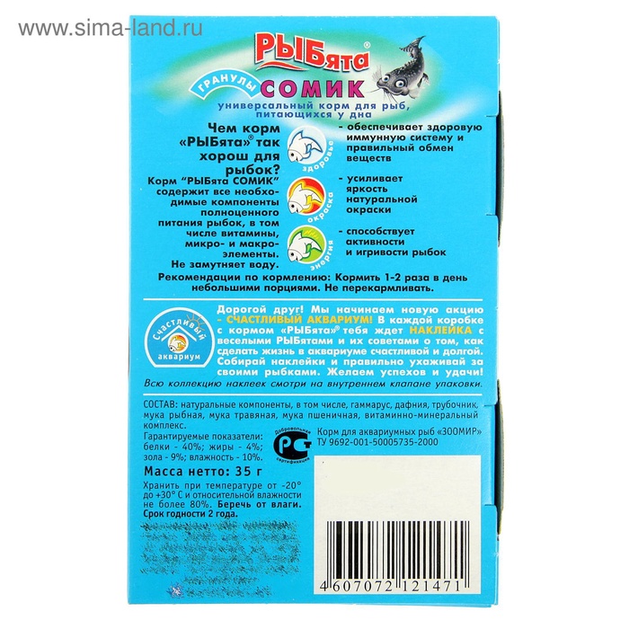 Корм «РЫБята СОМИК» (+ сюрприз) для донных рыб, гранулы, 35 г