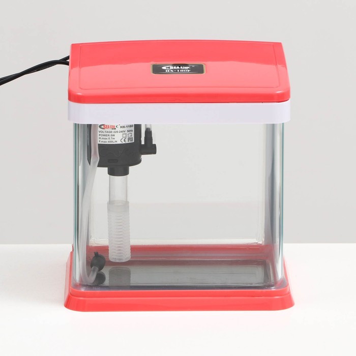 Аквариум SeaStar HX-180F в комплекте: LED-лампа, фильтр, 3,5 л, красный
