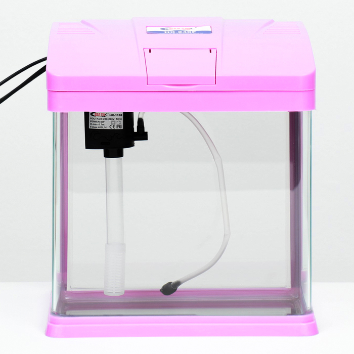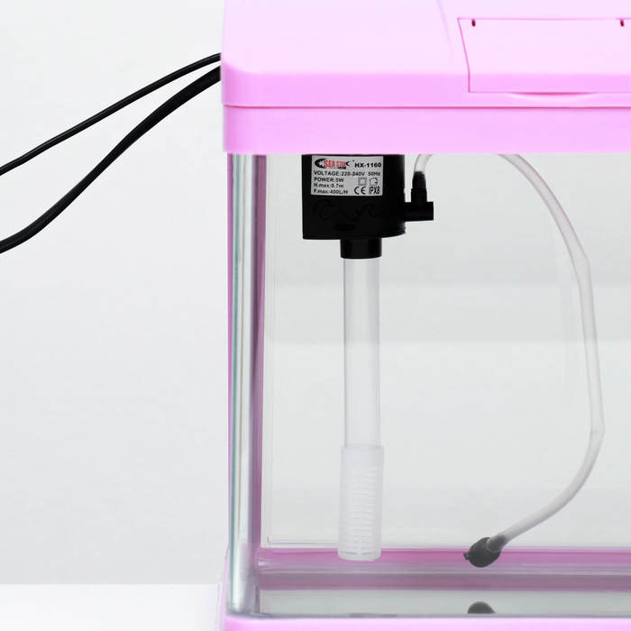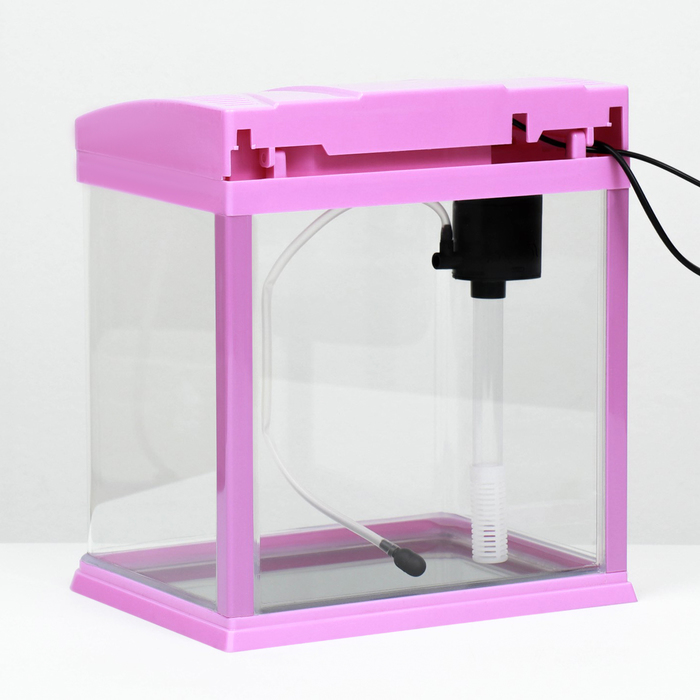Аквариум 10 литров розового цвета, в комплекте: LED-лампа, фильтр.