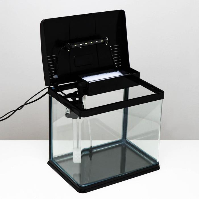 Аквариум полностью готов к работе. В него встроены фильтр и светодиодная лампа (в крышке аквариума).