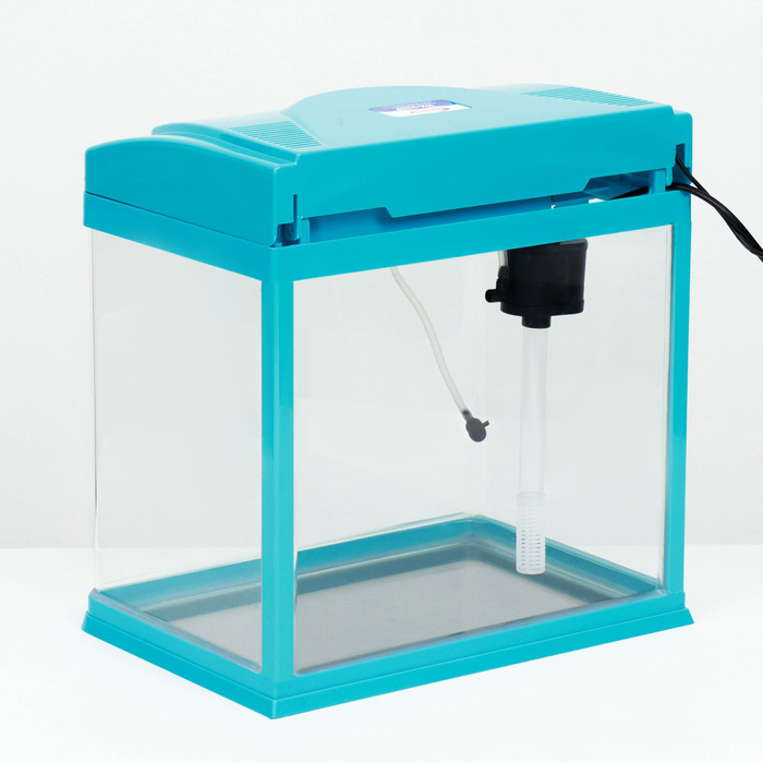 Аквариум 18 литров голубого цвета, в комплекте: LED-лампа 7 режимов, фильтр.