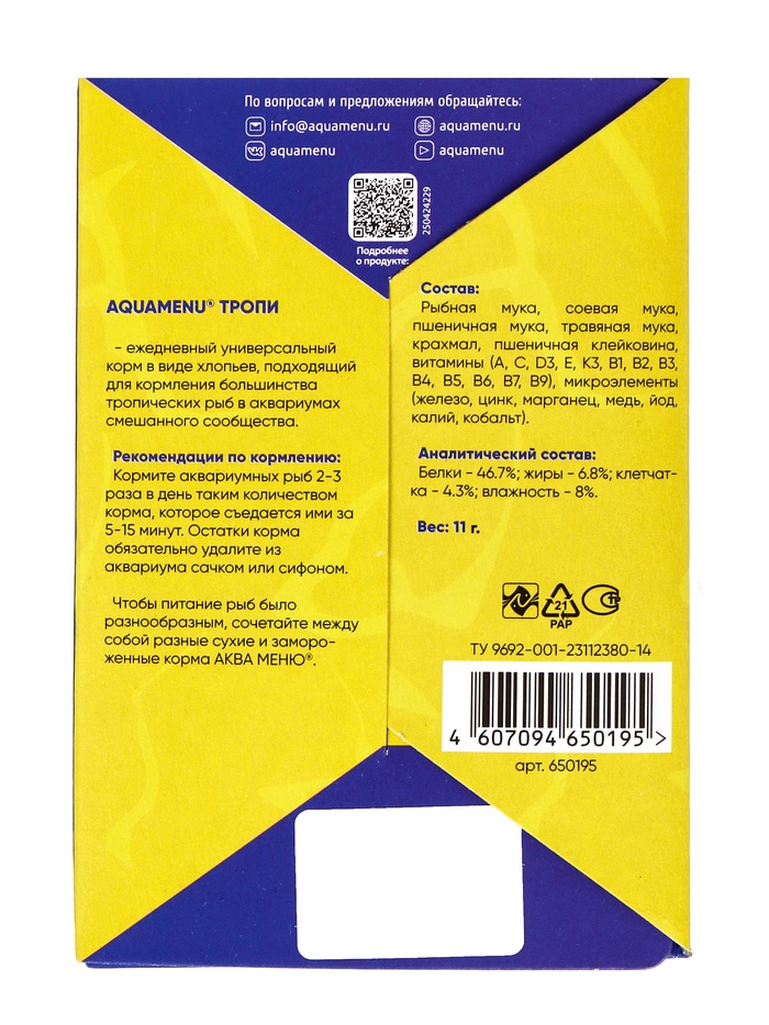 Корм Аква меню «Тропи» для рыб, 11 г