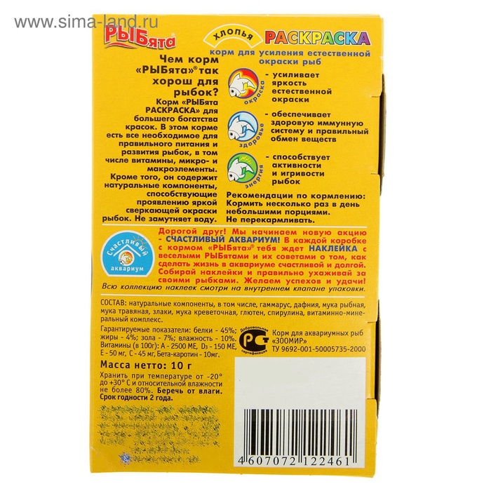Корм «РЫБята РАСКРАСКА» (+ сюрприз) для усиления окраски рыб, хлопья, 10 г