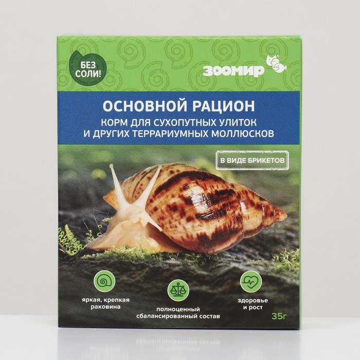 Корм ЗООМИР «Основной рацион» для сухопутных улиток и других террариумных моллюсков, 35 г