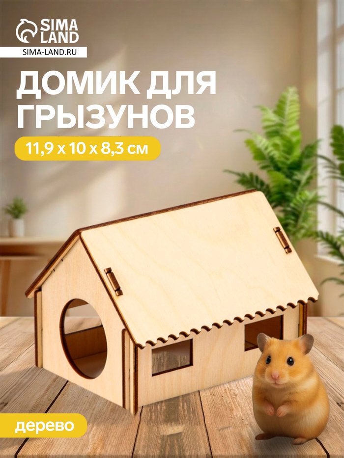 Домик для грызунов, 11.9×10×8.3 см, дерево