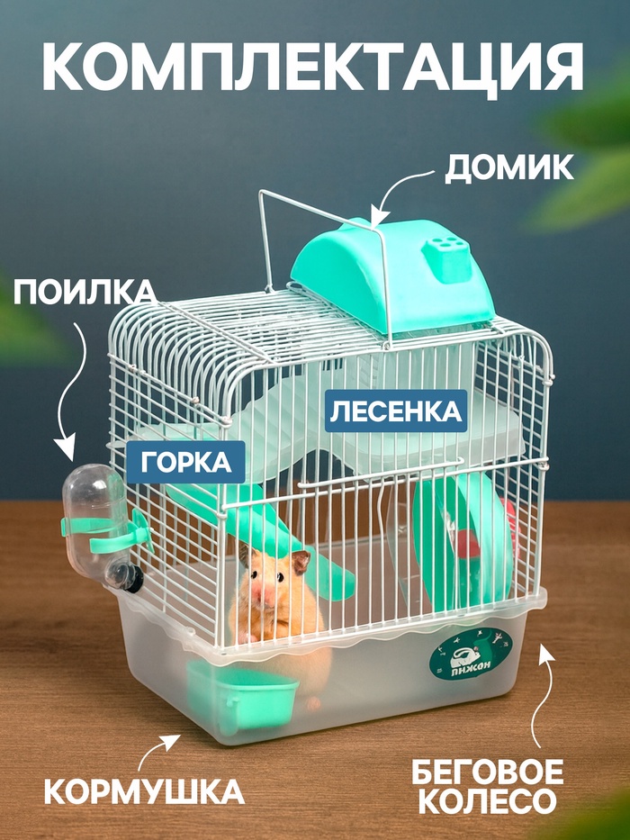 Клетка для грызунов «Пижон», 23×17×33 см, прозрачная, зелёное наполнение