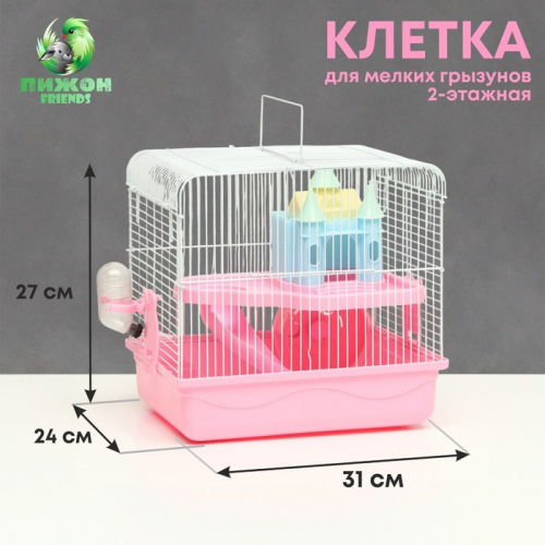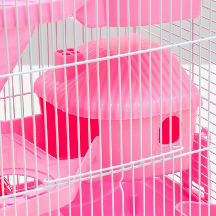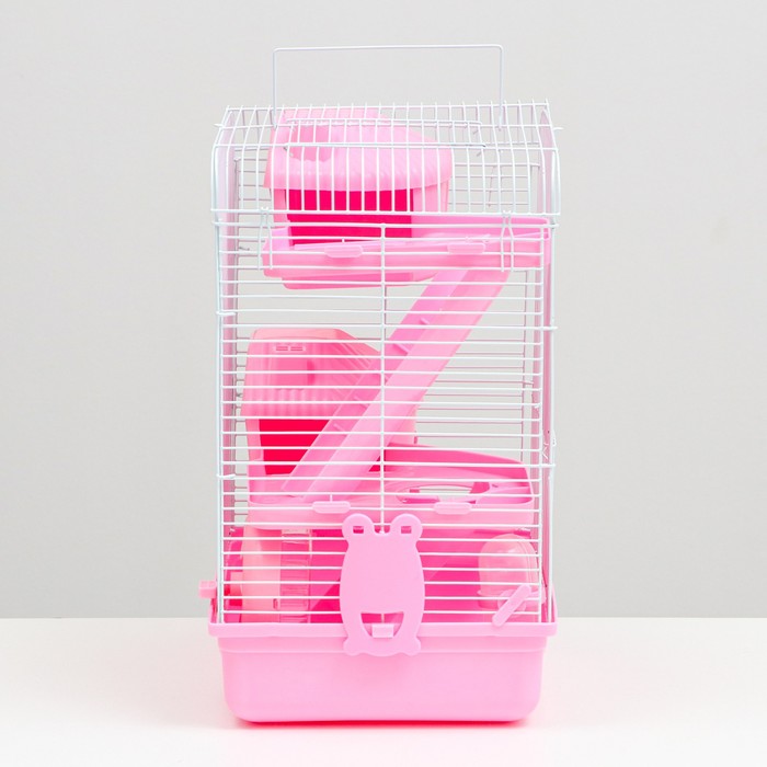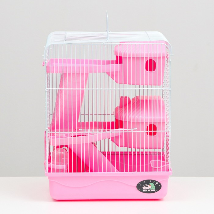 Клетка для грызунов «Пижон», 31×24×40 см, трёхэтажная, с наполнением, пластик, металл, розовая
