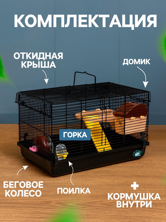 Клетка для грызунов «Пижон», 47×30×27 см с наполнением, чёрная