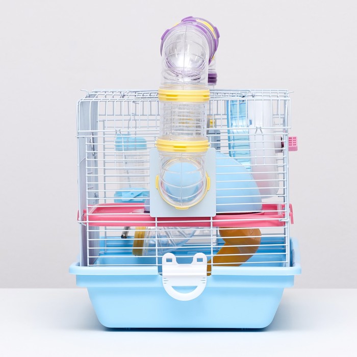 Клетка для грызунов «Пижон», 37×27×30 см, укомплектованная, с туннелем, пластик, металл, синяя