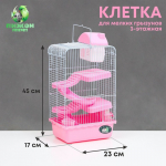 Клетка для грызунов, 32×21×55 см, с туннелем и наполнением, розовая