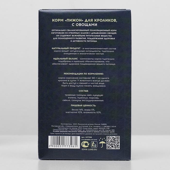 Корм «Пижон» для кроликов, с овощами, 400 г