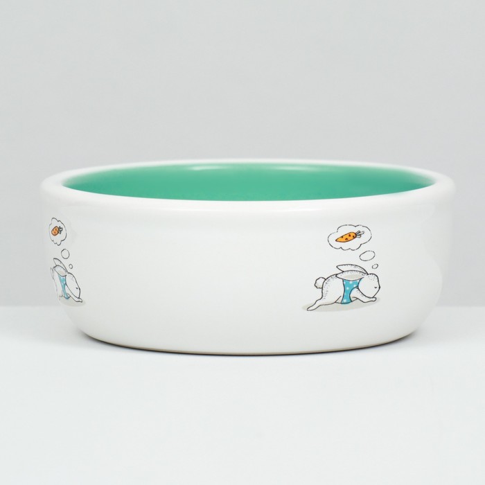 Миска для кроликов, 200 мл, 10×3.7 см, керамика, мятная, белая