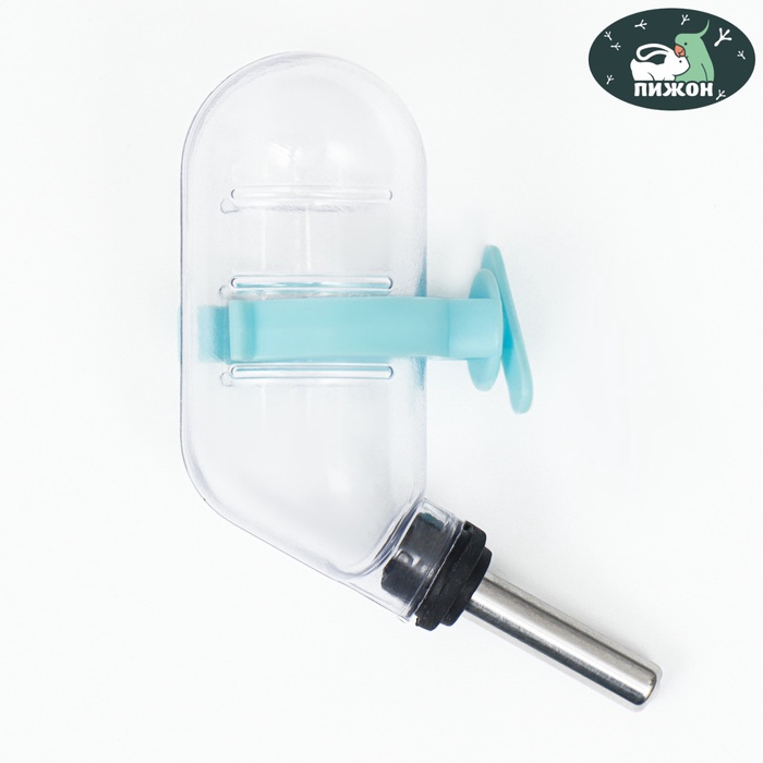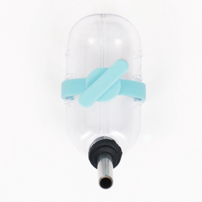 Поилка для грызунов с металлическим носиком, 60 мл, прозрачная с голубым крепление