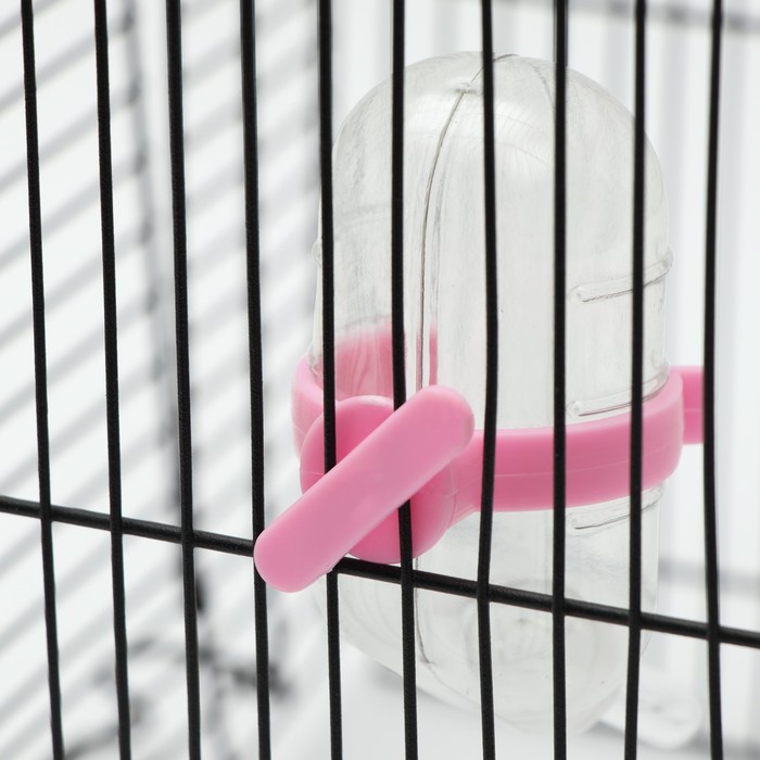 Поилка для грызунов, 60 мл, 12×4 см, с розовым креплением, прозрачная