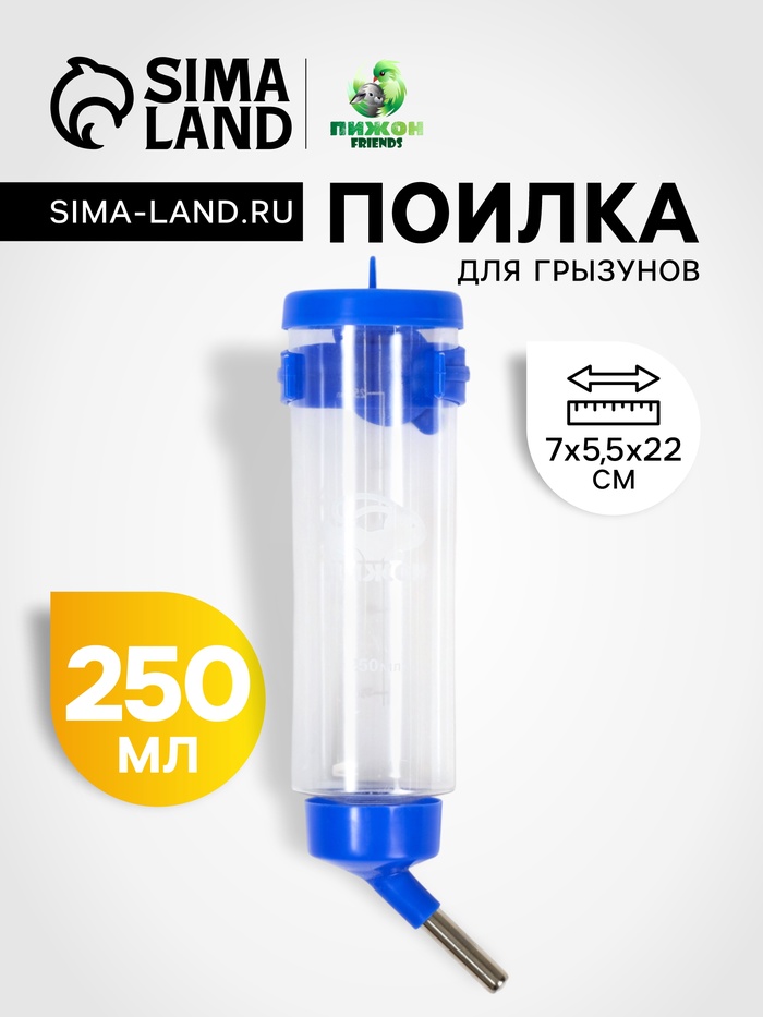 Поилка для грызунов «Пижон», 250 мл, синяя