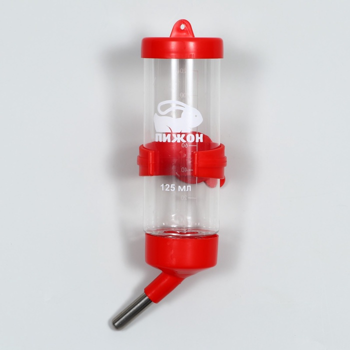 Поилка для грызунов Пижон FRIENDS, 125 мл, 12.5×4.5 см, красная
