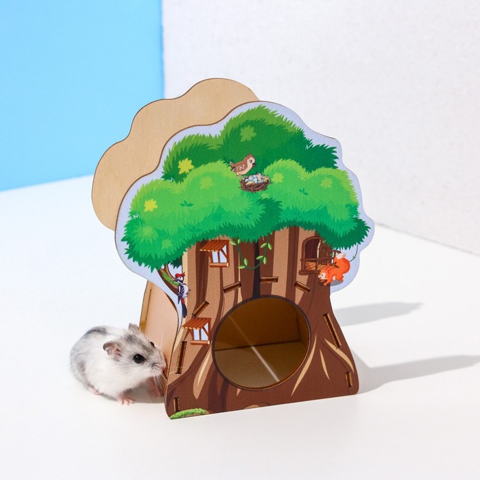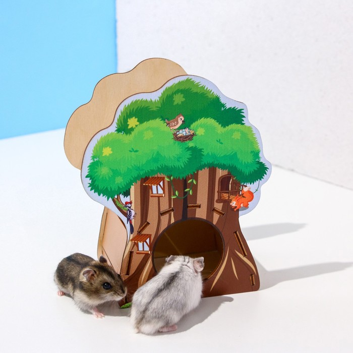 Деревянный домик послужит надёжным укрытием для питомца, а также идеальным местом для сна и отдыха. Предназначен для мелких грызунов: джунгарских хомяков, мышек и других.