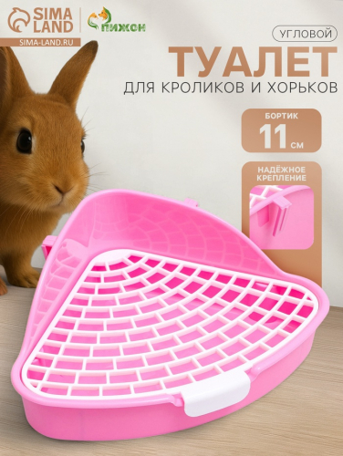 Туалет для грызунов, 33×19×18 см, угловой, пластик, цвет МИКС