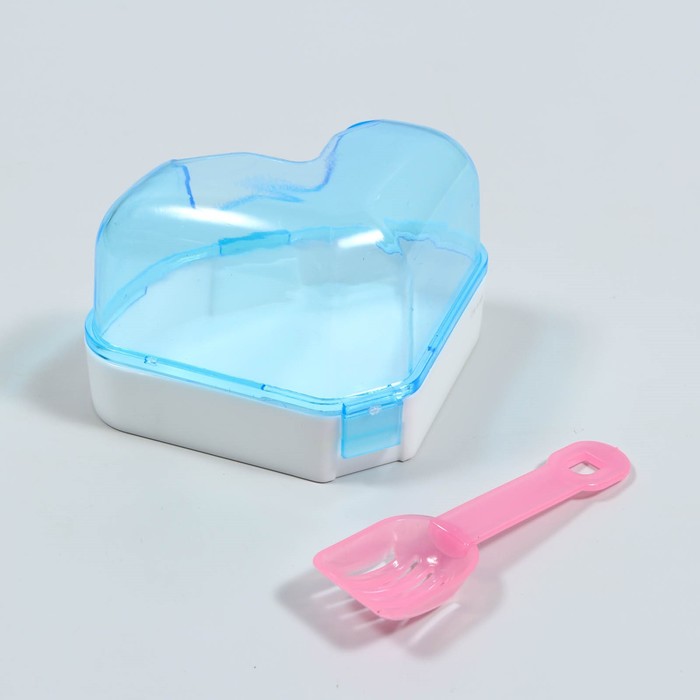 Ванночка для грызунов, 14×10.4 см, угловая, с лопаткой, пластик, голубая