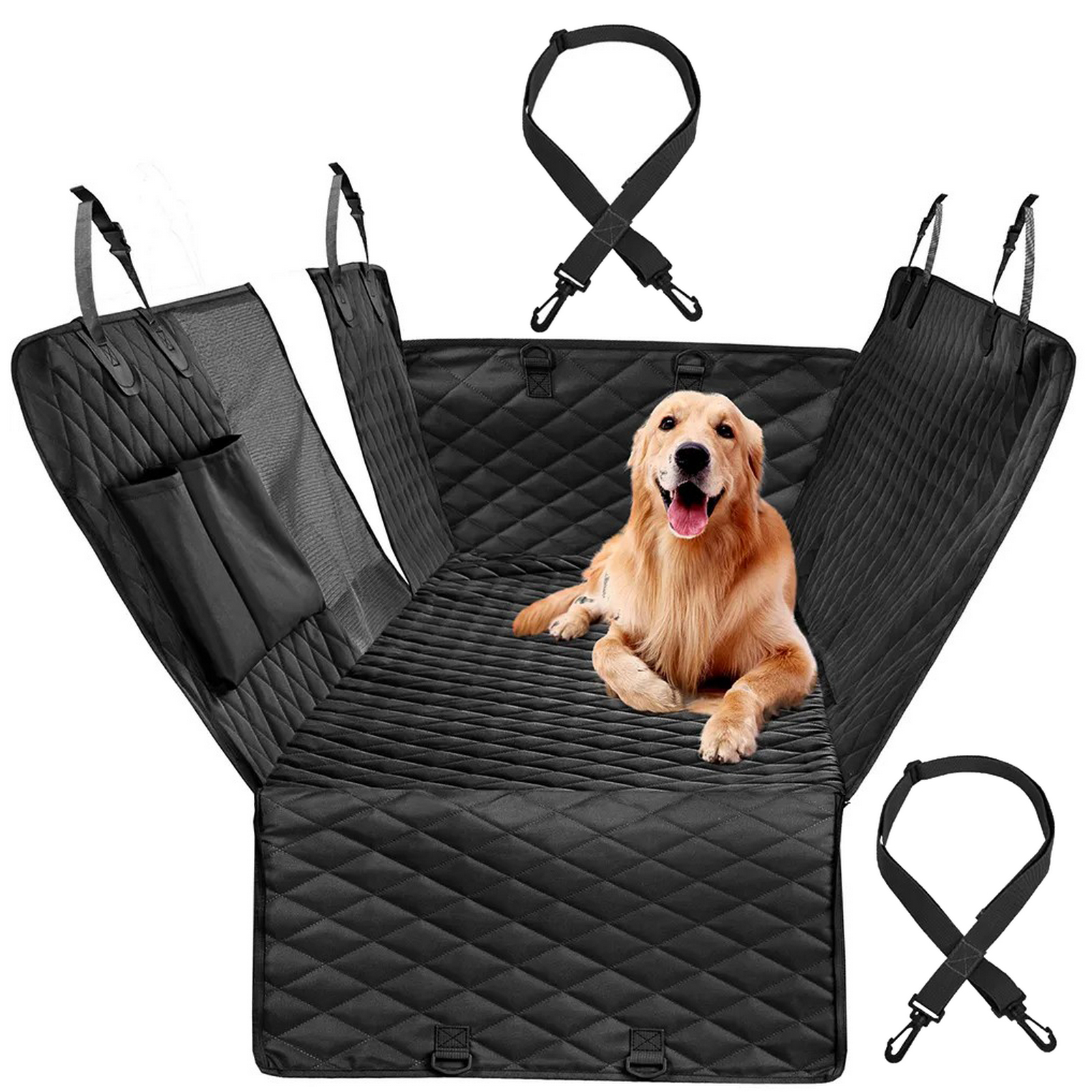 Автогамак для перевозки животных "Место Бро", цвет черный, влагозащ. ткань, ремень для крепл. к ошейнику, 133*140см
