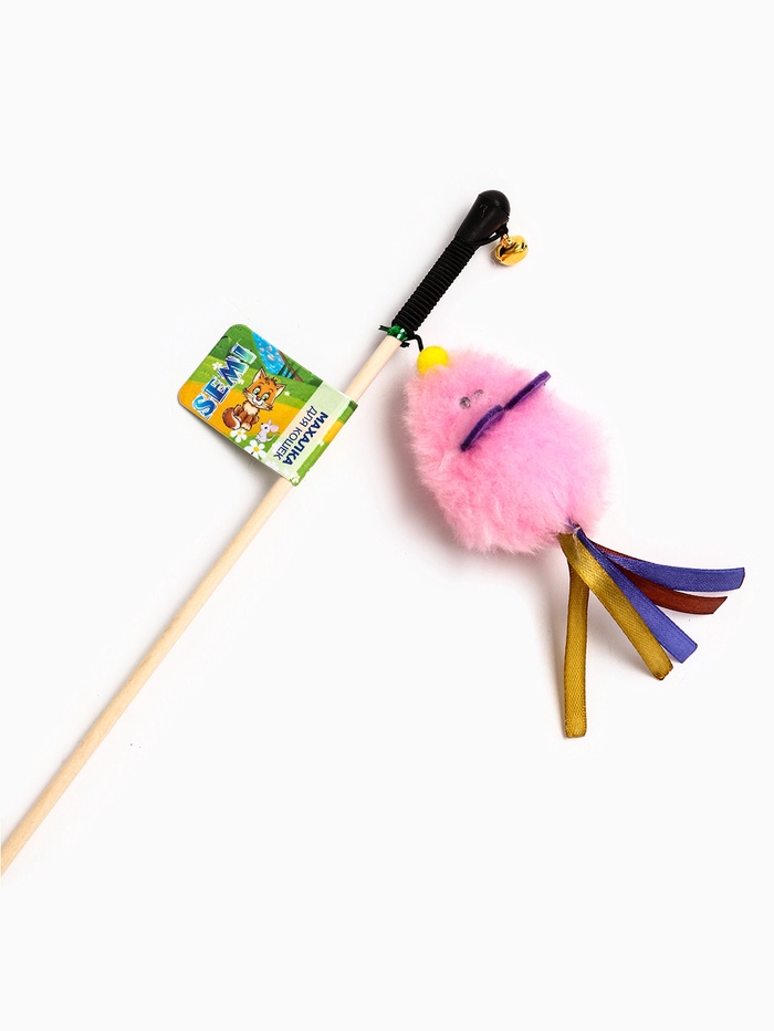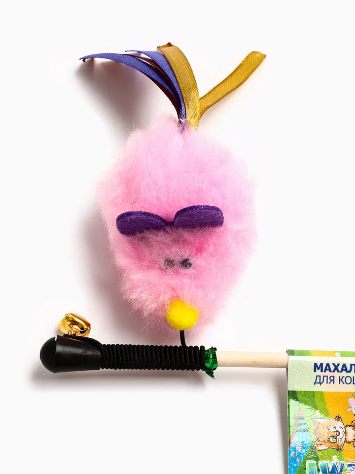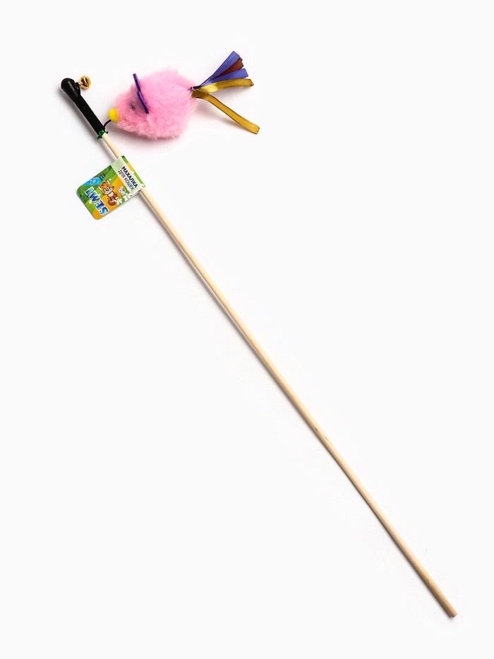 Дразнилка - удочка «Мышка». с колокольчиком, на деревянной палочке, розовая