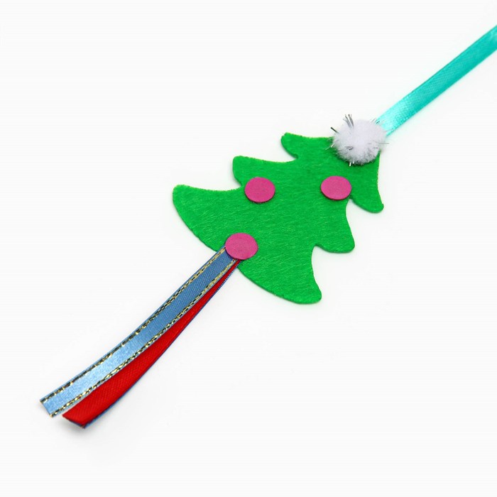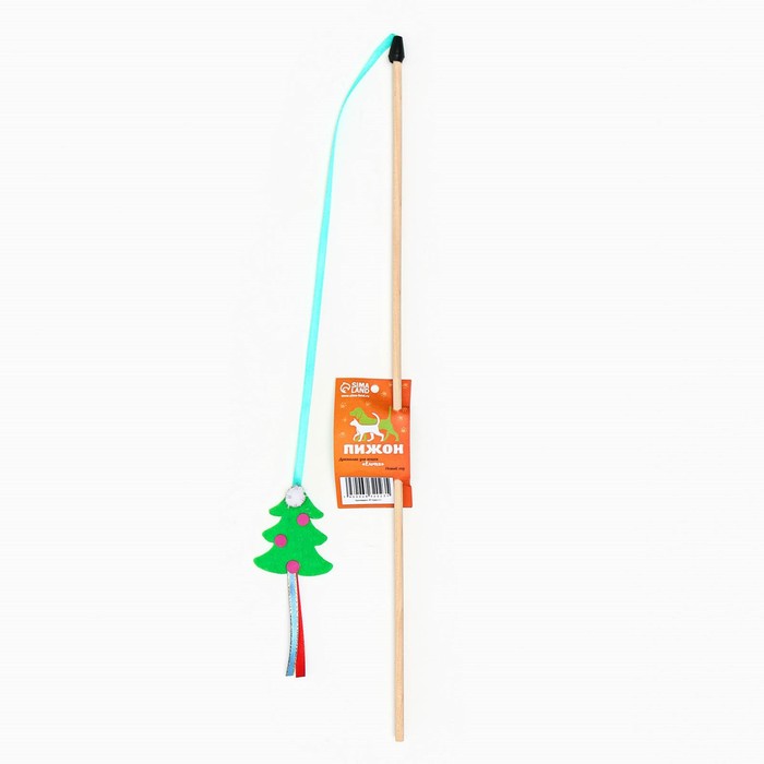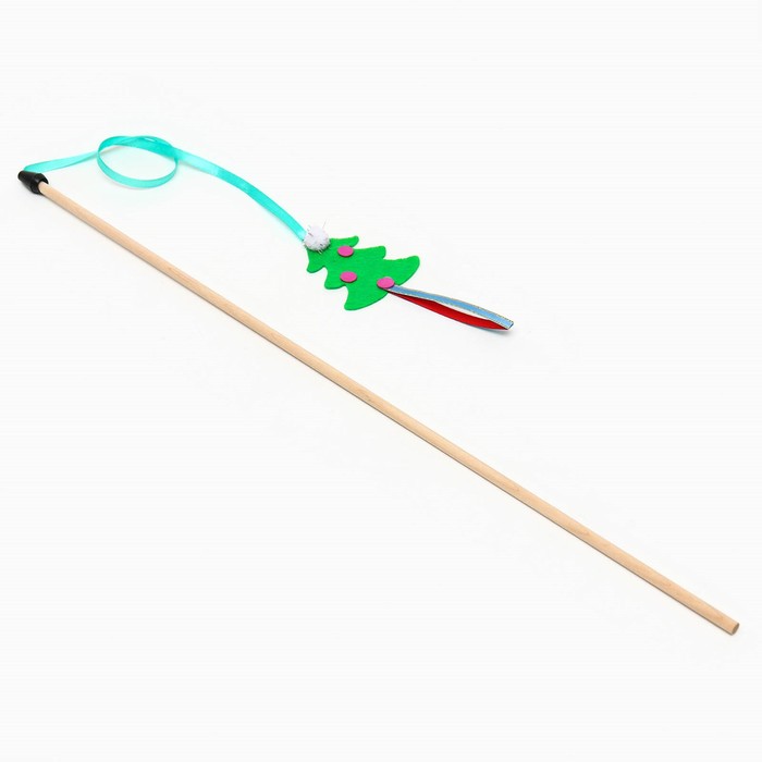 Дразнилка-удочка для кошек «Ёлочка», на деревянной палочке, зелёная