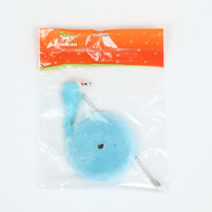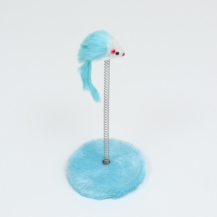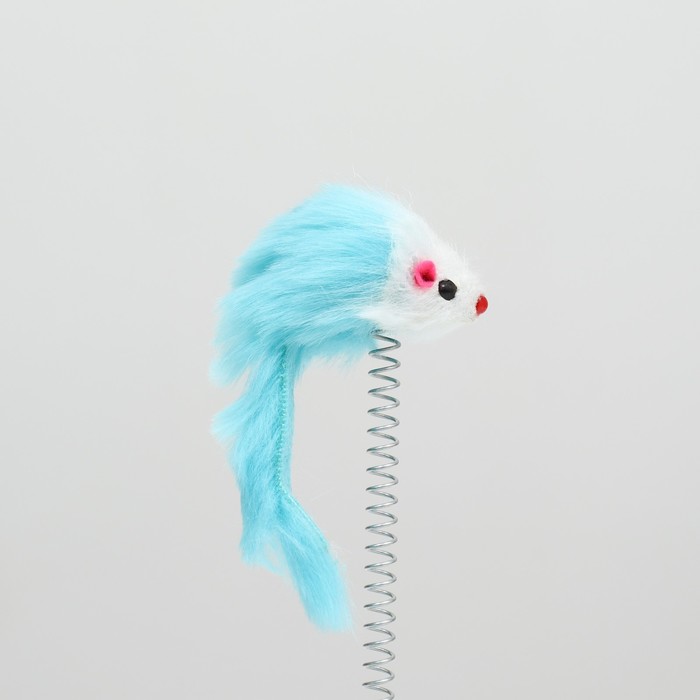 Дразнилка для кошек, 10.5×23 см, на пружине с мышью(5 см, голубая