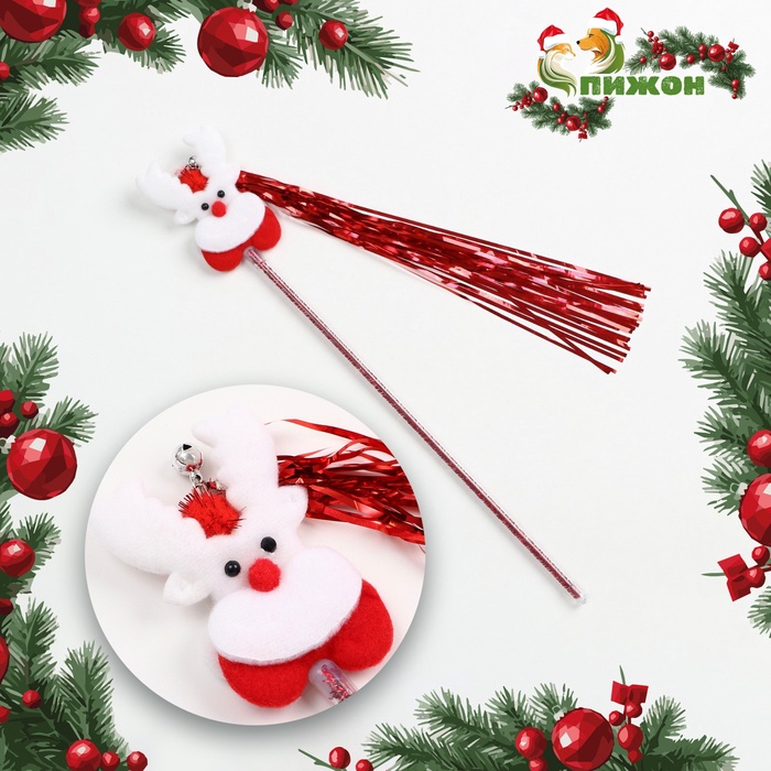 Дразнилка для кошек «Новогодний заяц», 30 см, с бубенчиком